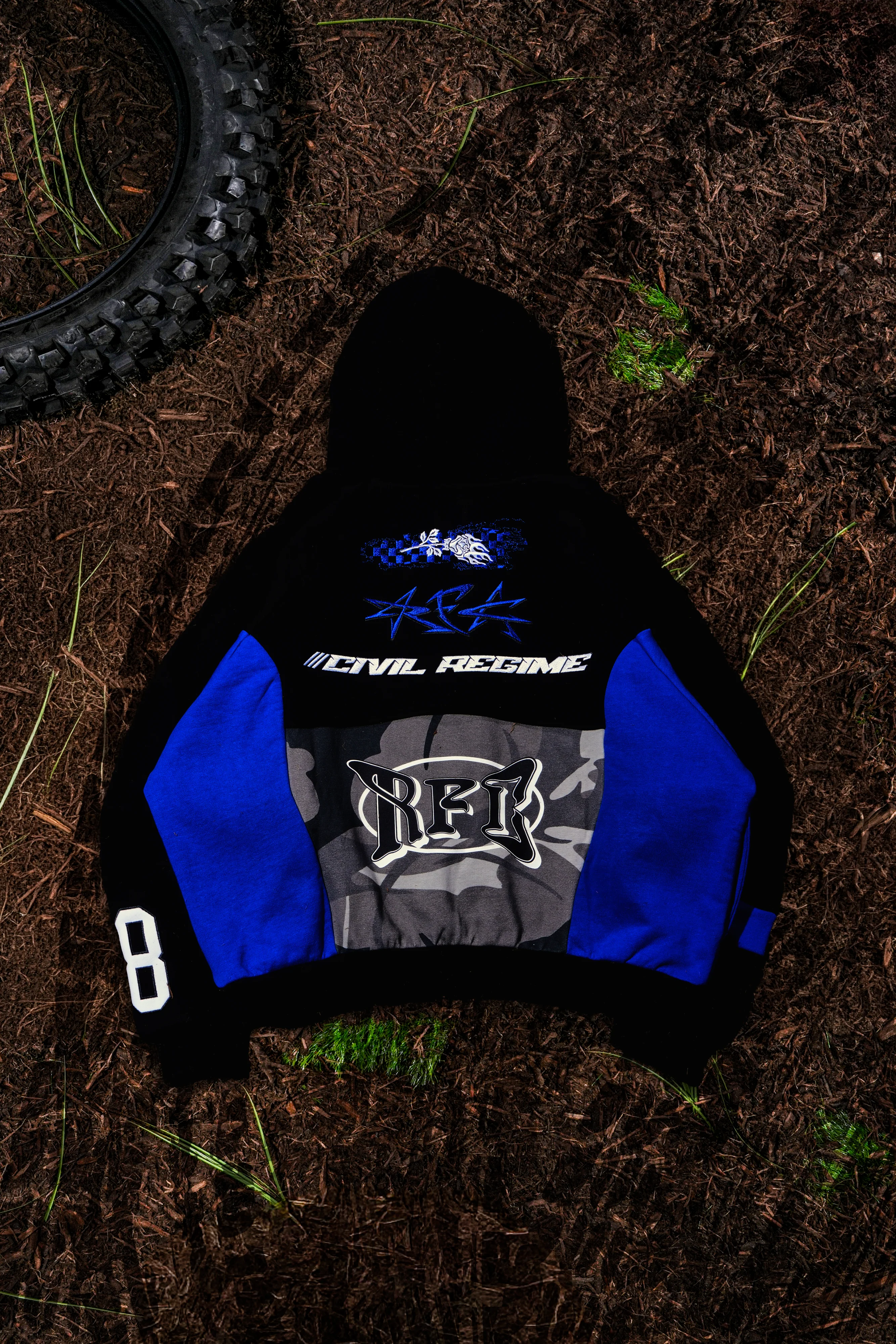 Civil Motors Destroy Hoodie in Black/Blue